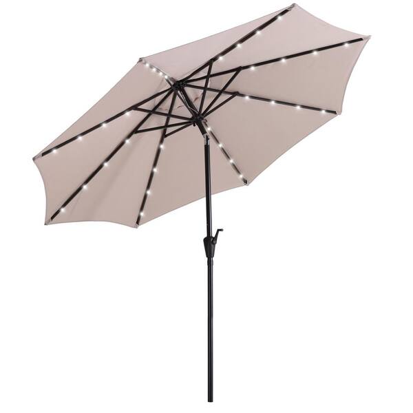 Tatayosi 9 Ft Steel Pole Outdoor Patio Market Push Button Tilt Umbrella With 32 Led Solar Lights In Beige Wf H S0002a 1 The Home Depot